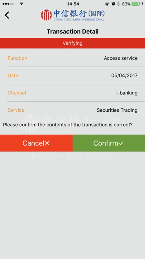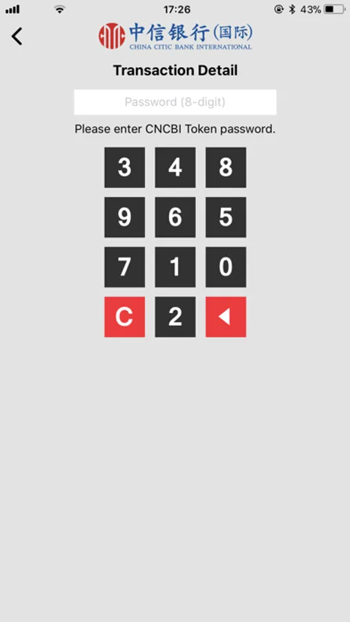 After you submit the above transaction through CITIC Mobile Banking or Internet Banking, a Push Notification will be sent to your mobile phone with CNCBI Token enabled. You can click on the push notification or turn on CNCBI Token Check the transaction details and enter the CNCBI token password to confirm the transaction.
