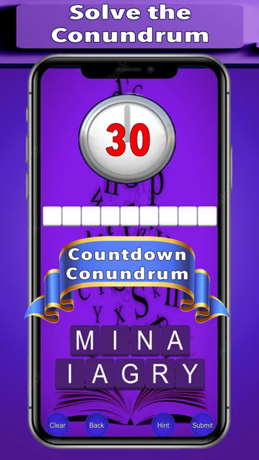 This game combines four games and is based on the TV game show countdown. The word games are based on arranging vowels and consonants to make the longest words.