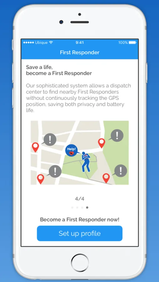When the emergency dispatch center needs a first responder, it will ask the system to know which persons are close to the emergency and then alert them via the app. You receive a push notification on your phone and can accept or refuse to go. If you accept you will then receive information on where to go and start chest compression while waiting for the ambulance.