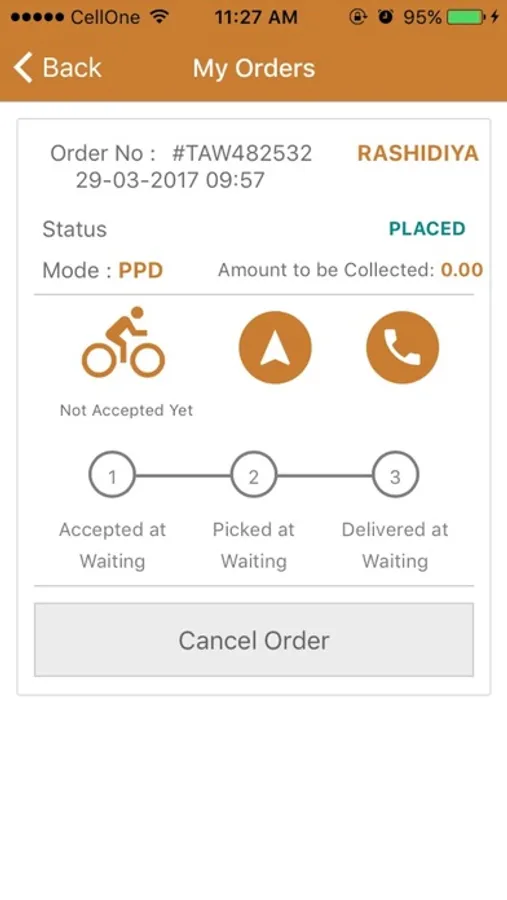 Tawseelah Merchant Application for Merchant. Whenever a merchant places an order delivery executive associated to him gets notification for order pickup. Delivery executives can accept order and merchant will get a notification for it.