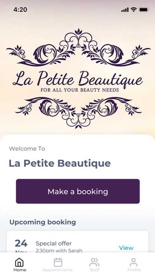 The La Petite Beautique app makes booking your appointments and managing your loyalty points even easier. You're just a few taps away from feeling good and looking great!