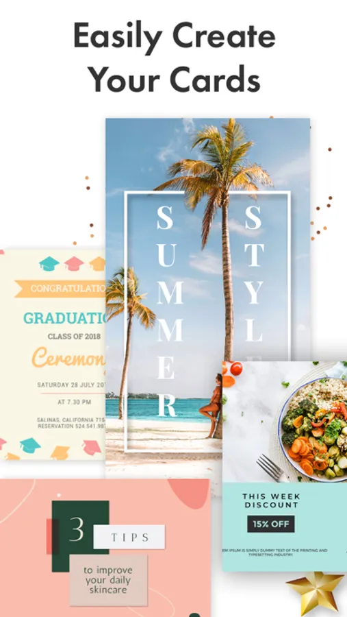 This app has immense variety of posters such as, Baby, Graduation, Wedding, Birthday, Sale, Party, Missing.
