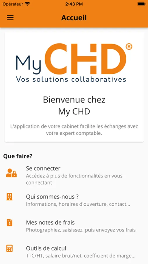 Because the world is changing, we offer you a handy application for managing your online account 7days/7 and 24h/24. This ease of use allows you anytime access to your documents, consult the news of the firm, or to gain visibility on various activities related to your record. We wish you a nice navigation!