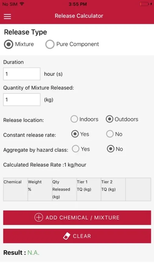 The chemical and mixtures database will provide a standard list of chemicals and mixtures. The app will also provide the user with a way to add, remove, or edit custom chemicals or mixtures to this database so long as the user can provide at a minimum number of fields.