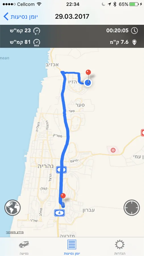 בעזרת האפליקציה תוכלו לתעד את סוג הנסיעות שלכם, זמני נסיעה, מסלול, מהירויות ומרחקים מצטברים