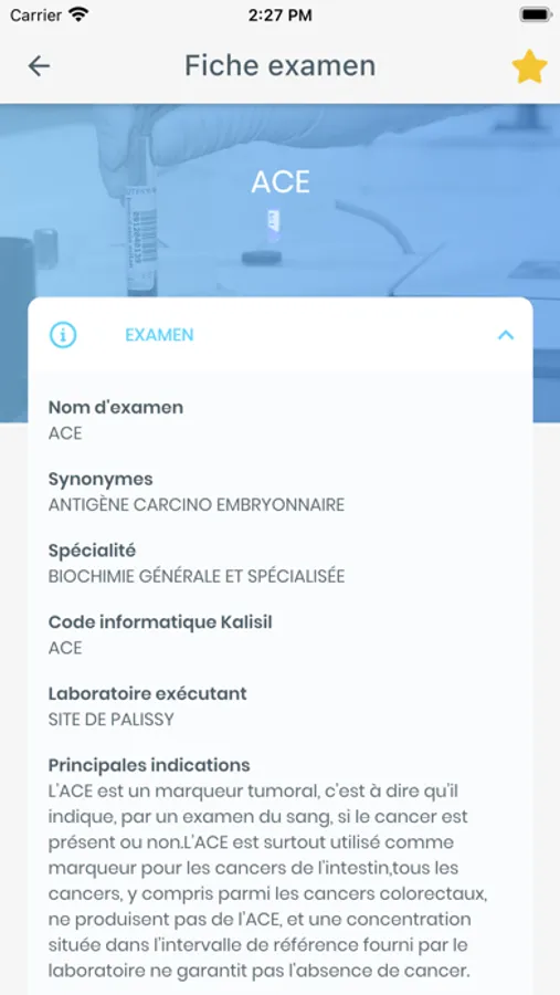 Afin de simplifier vos futures recherches, une mise en favoris des analyses est disponible.