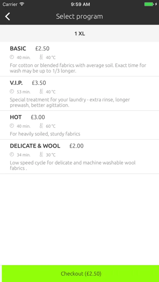 Easy steps to choose the available machines, programs and complete the payment for self-service laundry.
