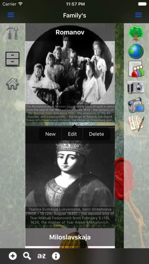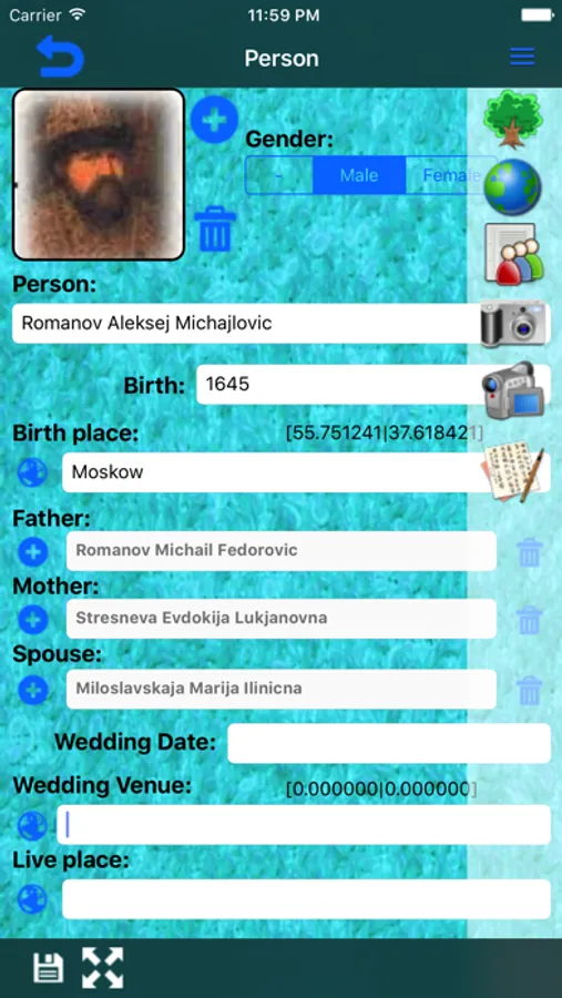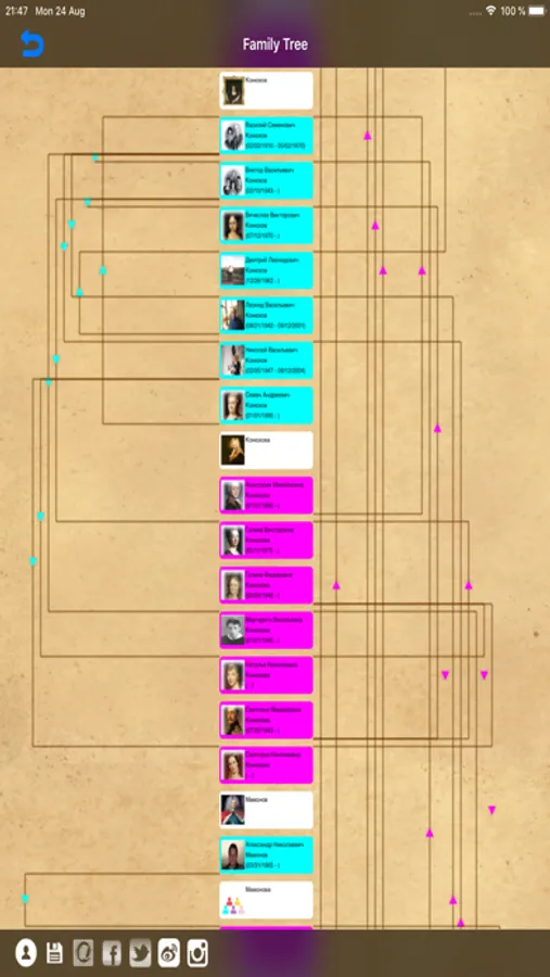 The program forms a list of families and the composition of the family. It is designed to store family history and build a family tree. Saves photos and video documents. The tree is built on graphic and hypertext canvas.