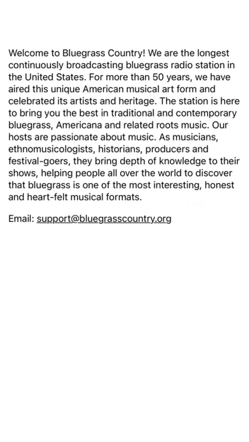 Player for Bluegrass Country radio station located in Washington, DC and a service of the Bluegrass Country Foundation.. Formerly operated by WAMU, American University, Washington, DC. The Best Source for Bluegrass in DC... and around the World!