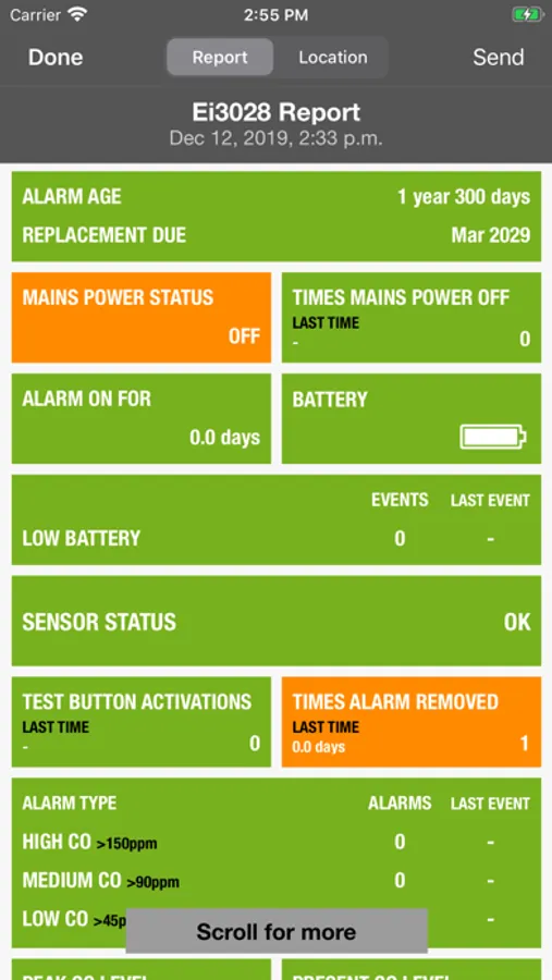 Features include the ability to scan bar code serial numbers within the app, group reports for example by address to provide a comprehensive report on a properties alarms, email reports in both PDF or CSV format.
