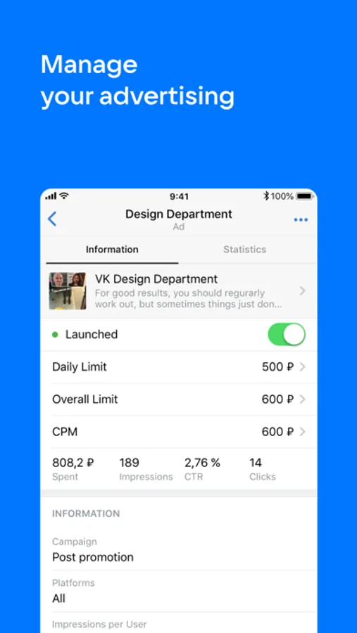 VK Admin is used to manage VK communities, work with ad campaigns and ads, and stay in touch with followers and customers.