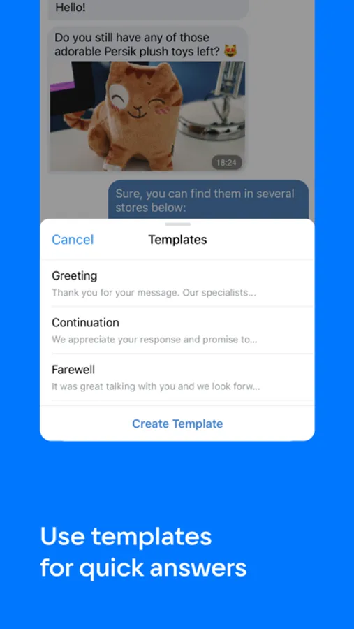 • Reply to customer messages and create templates with answers to frequently asked questions.