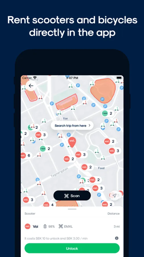Electric scooter is an effective and fun way to move around in the city. In Travis you can easily find, book and pay your journey with your nearest Voi or Tier. And hey, don’t forget to be smart about your ride and use a helmet when your are riding a scooter!
