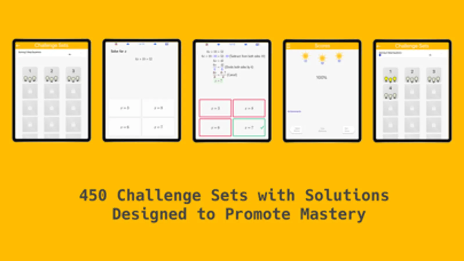 Challenge sets are designed to promote subject mastery through gamification. There are 450 Challenge sets. Try to get a perfect score (3 light bulbs) in all 450 for a total of 1350 Lightbulbs.