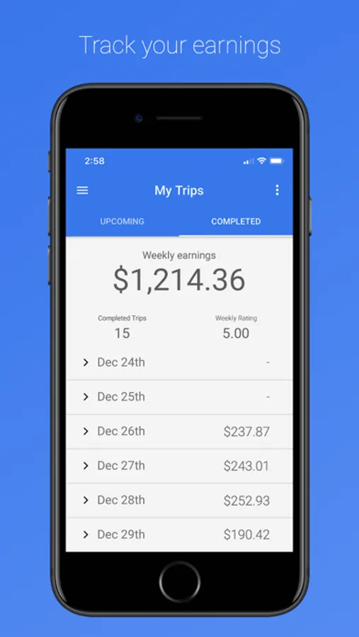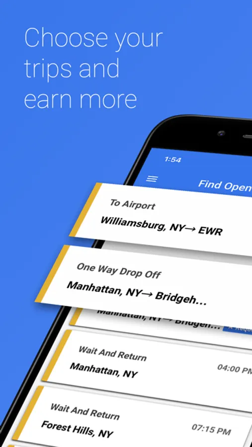 Highly rated drivers get priority access to new leads and higher payouts. Accept trips days in advance, and find new leads in any area.