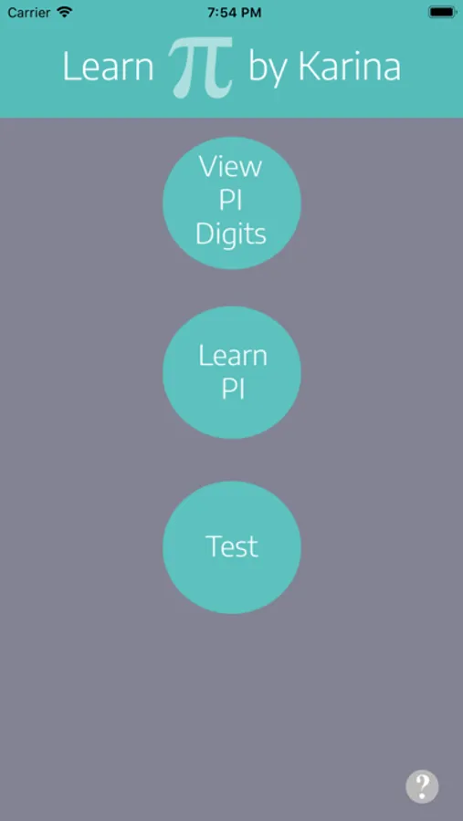 Pi By Karina is an app which simplifies the learning process in memorizing the digits of Pi. The app is inspired by a technique that my daughter and I utilized in order to assist her for her Pi Contest at school on March 14th (Pi 3.14 = 3/14 = March 14). Other apps available do not break up the digits into simple smaller groups of numbers. Pi By Karina does this! You can learn many more digits of pi by breaking down the group of numbers as you would in learning a new phone number. Add a little tune to it, and you are set! Good luck! See you on Pi Day!