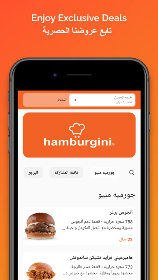 Your favorite order from Hamburgini is now a few clicks away! easily find your nearest branch, choose your order and go straight to pick it up.