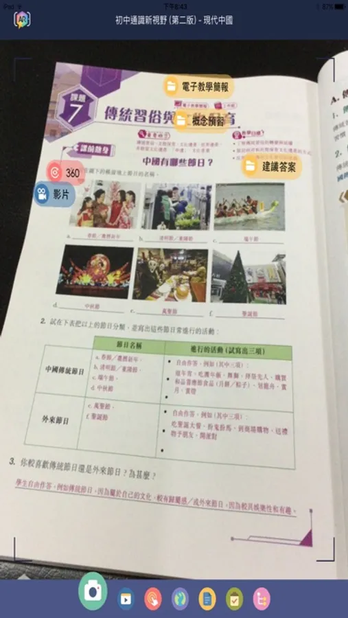 1. 掃瞄課本書頁,豐富的教學資源即時顯現