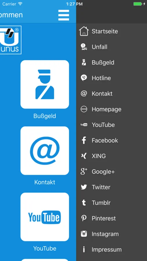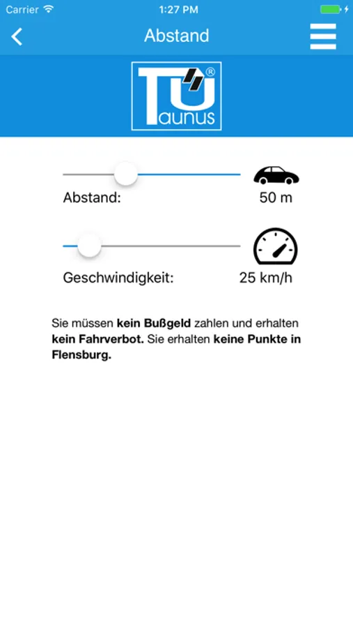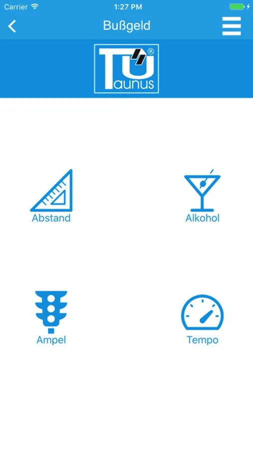 Zudem finden sie in der App einen wertvollen Bußgeldrechner für Abstands-, Alkohol-, Ampel- und Tempoverstöße, sowie den direkten Zugang zu den sozialen Netzwerken der TÜ Taunus.
