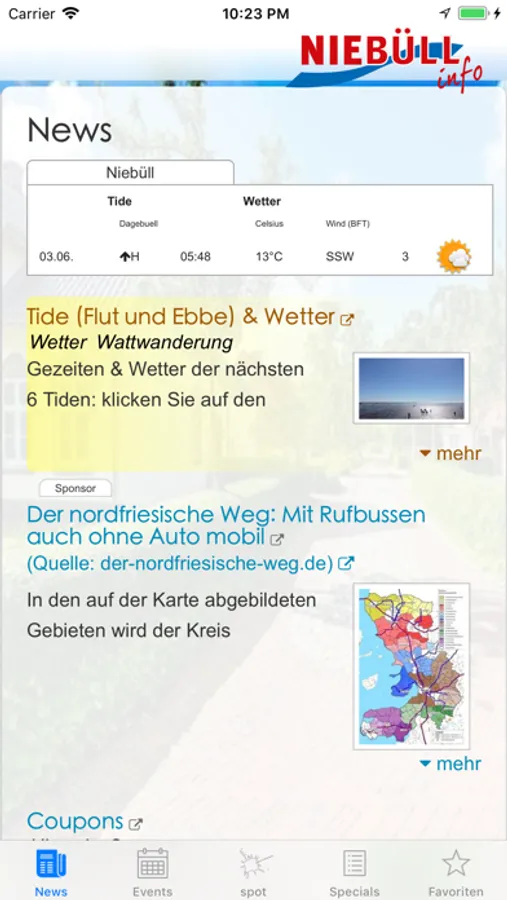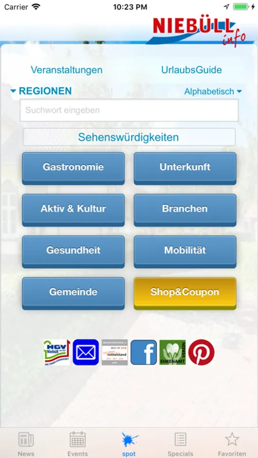 Diese kostenlose App aus Niebüll und Umgebung ist der nützliche Begleiter für die Planung, Buchung und Durchführung ihrer Reise. Mit Hilfe einer Volltextsuche, eines Kalenders oder verschiedener Suchen nach Kategorien und Merkmalen können die Informationen selektiert werden die den Bedürfnissen und Bedarfen am besten entsprechen. Die Zusammenstellung von Favoriten als Urlaubsplaner stellt die Interessen übersichtlich zusammen. Neben der alphabetischen Darstellung ist auch die Darstellung nach Entfernung oder auf einer Karte möglich. Neben einer kurzen Info zum Objekt (Restaurant, Sehenswürdigkeit, Hotel, u.v.a.m.) stehen auch alle Kontaktmöglichkeiten, Alternativen zur Suche und gegebenenfalls Bewertungen zur Verfügung.