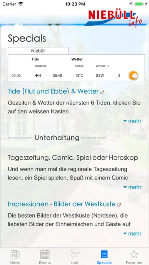• ständig aktualisierte Informationen zu Wasser (Tiden) und Wissenswertem
