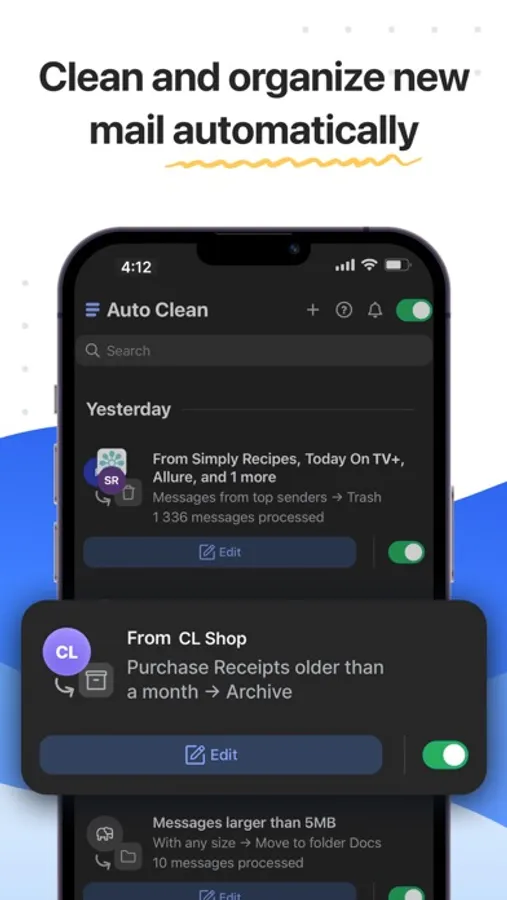 • Automate your inbox — Clean Email learns from your behavior and preferences to suggest how to keep your inbox clean. Highlight important messages and hide ones you don’t want to see.