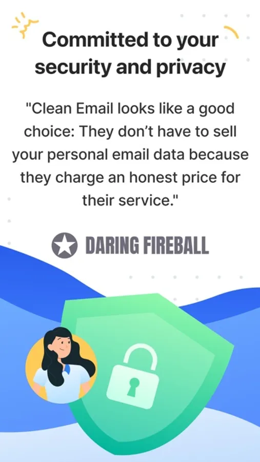 • Stay safe. Clean Email doesn’t collect or sell your data. In fact, we don’t even analyze it. We’re Google verified and have third-party security certification to prove it.