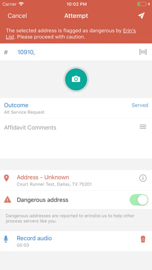 EZ Messenger's File and Serve Tracking(F.A.S.T.) mobile application for process servers. Process Servers in the field can use this mobile app for iOS to manage their inventory, report attempts, log serves and transmit photos, voice recordings and video of their activities.