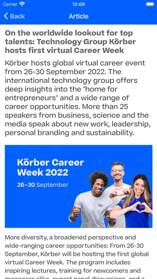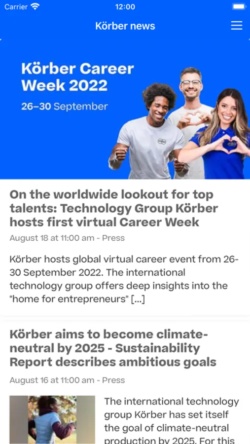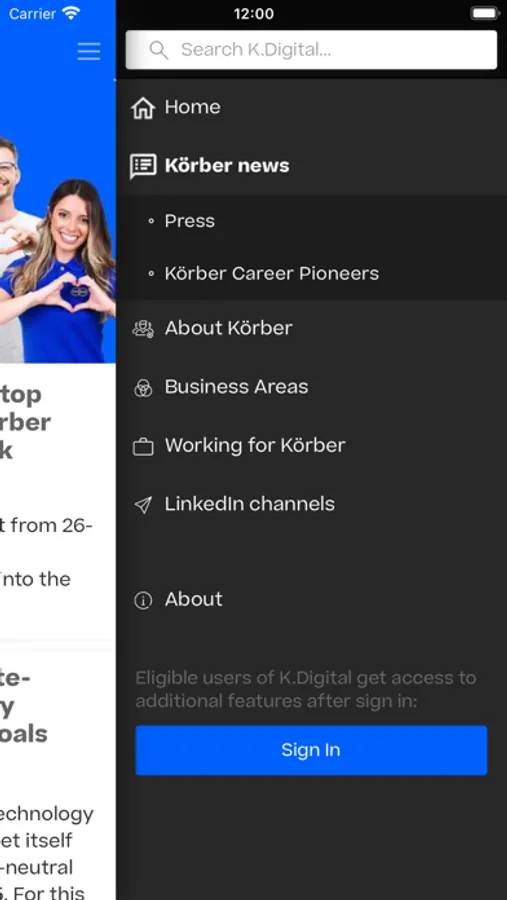 "K.Digital" news app is the Körber Group's central news and communications app and the best way to stay up to date. Körber is an international technology group. In five business areas, Körber experts translate entrepreneurial thinking into customer success and shape technological change worldwide.