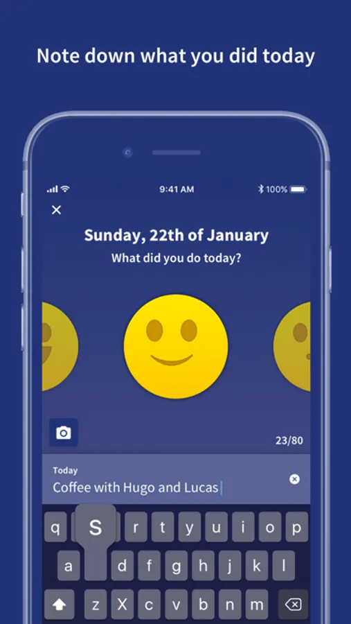 You can upload a photo to your daily story, protect your stories with a passcode and add reminders, so we can notify you on a specific or random moment.