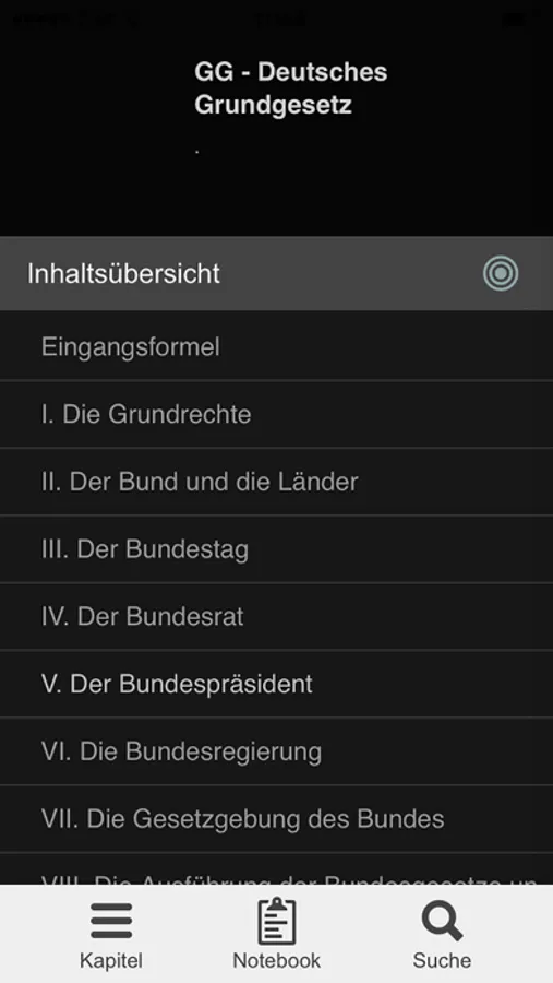 Die Applikation beinhaltet das GG welches offiziell auf https://www.gesetze-im-internet.de, veröffentlicht wurde. Auf dem aktuellsten Stand (23.12.2014).