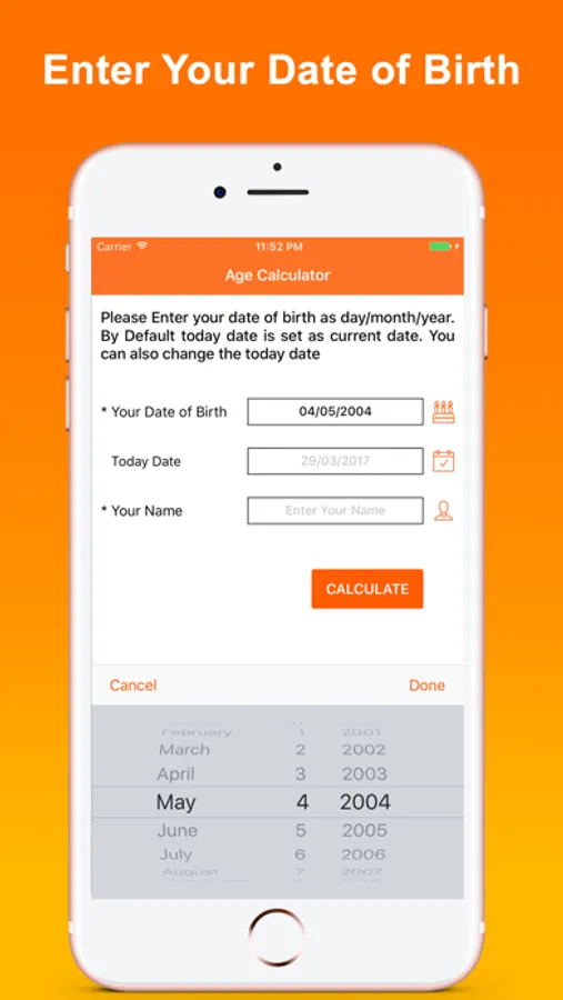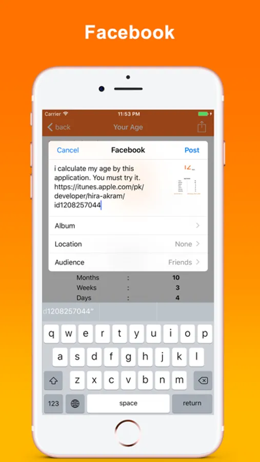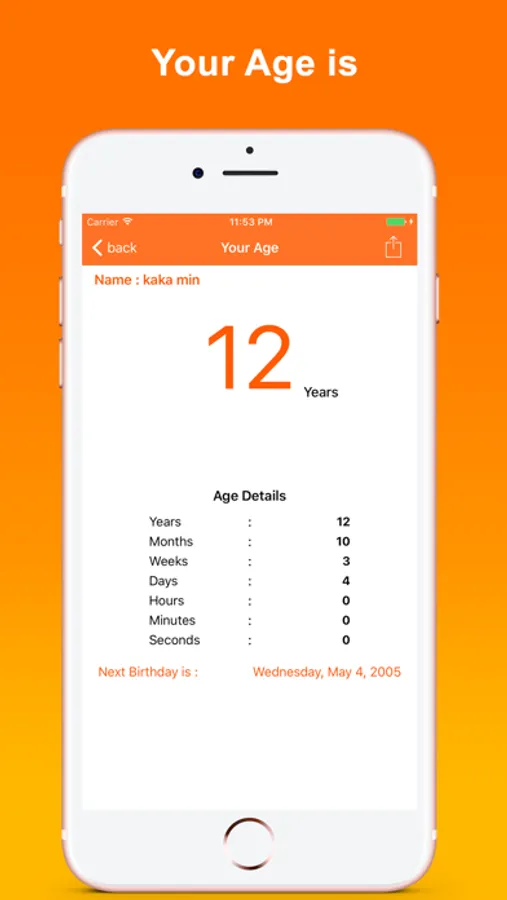 My application ‘Age calculator’ is totally offline and easy to use which calculate your age in details accuratley. The.n make a beautiful post with your name mention on it, which you can share with your friends on social media, email and also save to your phone photos library for remembrance.