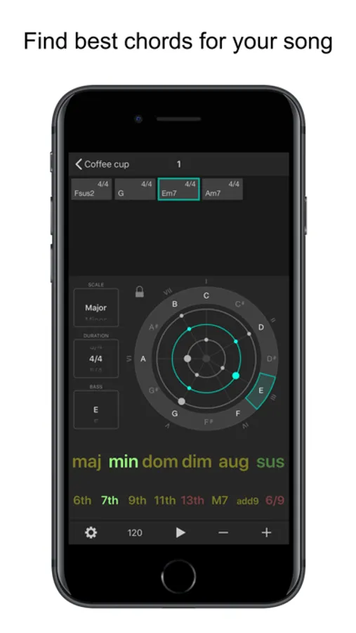 - Transpose the chord progression by rotating the key wheel (with the lock button unlocked). Or transpose the key of the scale while keeping the existing chords unchanged (with locked mode).