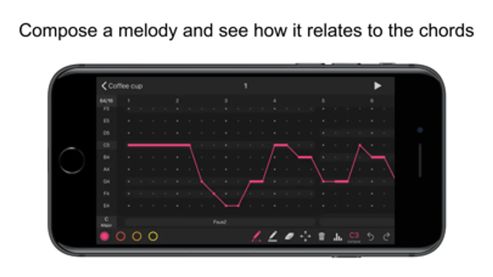 - While drawing your melody you will see which chords correspond to the specific steps and also which notes of the grid match the notes of the chords.