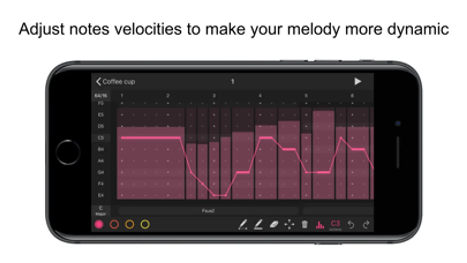 - Melody grid features the same collection of drawing tool as the arpeggio grid does.