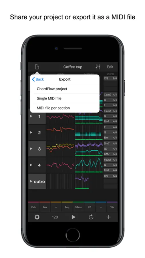 5. Save your song, share or export to your favourite DAW as a MIDI file.
