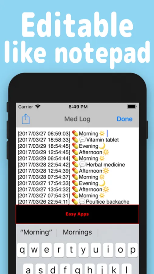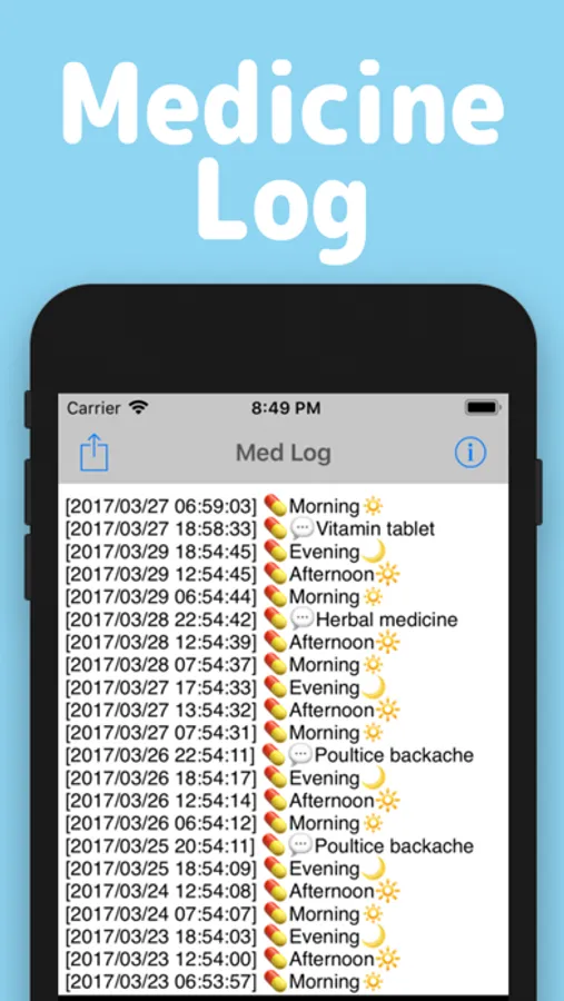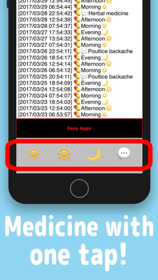 Date and time can be entered automatically, you can record the day-to-day take medicine in one tap.