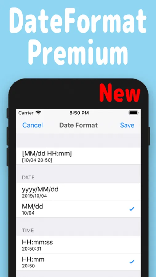 The date format can be set. This is a recommended feature. ("yyyy/MM/dd" or "MM/dd", "HH/mm/ss" or "HH/mm")