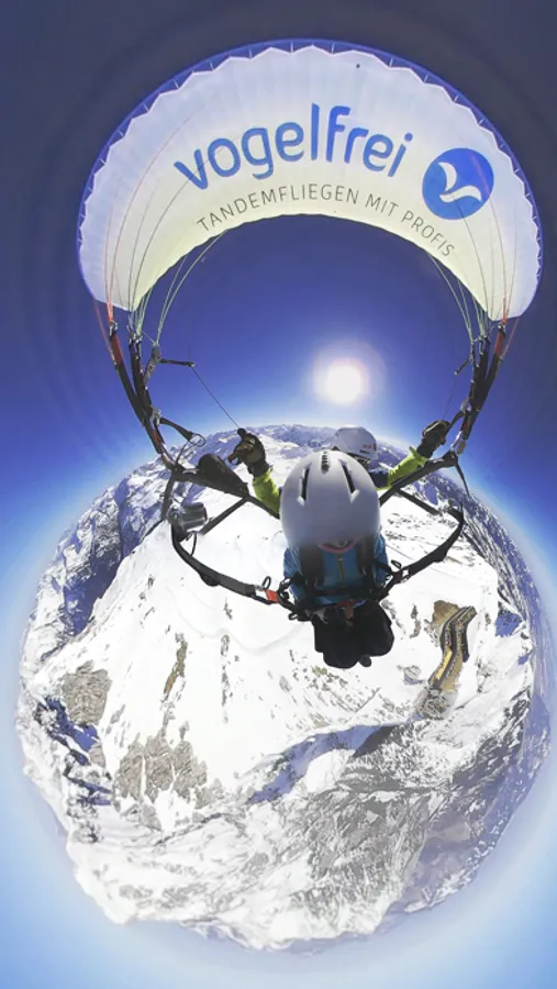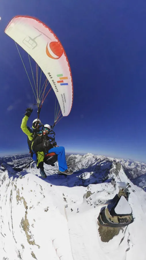 Awesome winter tandem paragliding VR experience above the Nebelhorn in Oberstdorf.