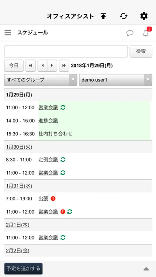 ・部署やグループごとにスケジュールを登録して管理することができます。