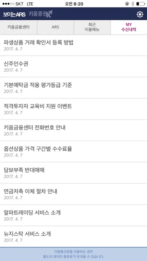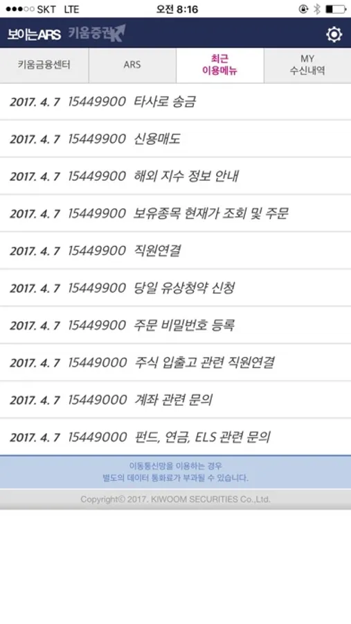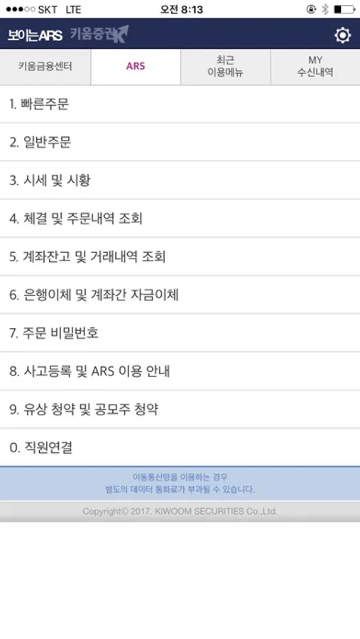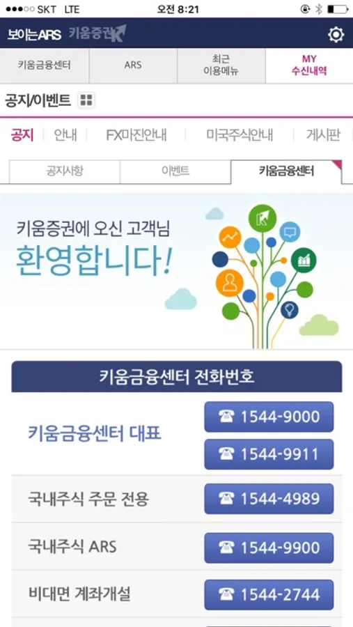 키움증권 보이는ARS를 이용하여 키움금융센터 및 ARS메뉴를 눈으로 보고 선택하세요 !!!