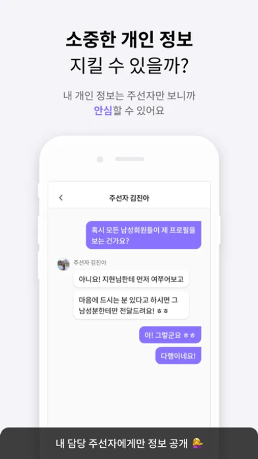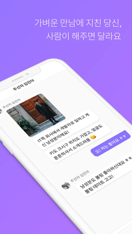 "가벼운 채팅 말고, '진짜 소개팅'을 받아보세요"