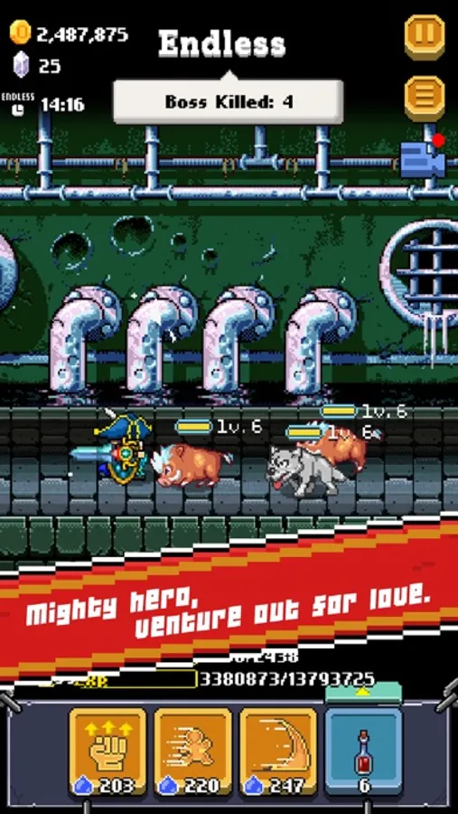 A pixel graphic side scroller with RPG elements presented by Lemon Jam Studio and Jampot Games. Let’s rescue the princess and become the Mighty Hero.