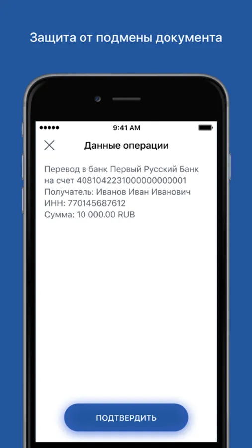 • Криптографически строгое подтверждение электронной подписи с привязкой к документу и устройству.