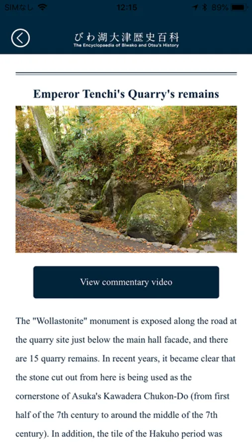 滋賀県大津市石山〜浜大津地区に点在する豊富な文化遺産の情報を発信するアプリです。アプリを起動させて登録された文化遺産に近づくと解説が表示されます。大津の歴史を発見し、楽しく学びながら巡る事ができます。
