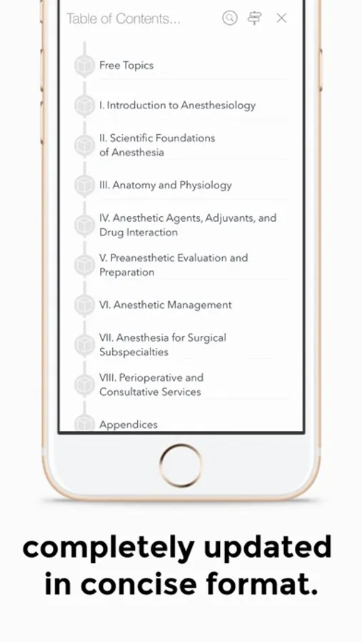 Download the FREE app and view selected topics (Approximately 10% of the content is viewable in the free app and tapping on the locked topic will launch the in-app purchase screen).