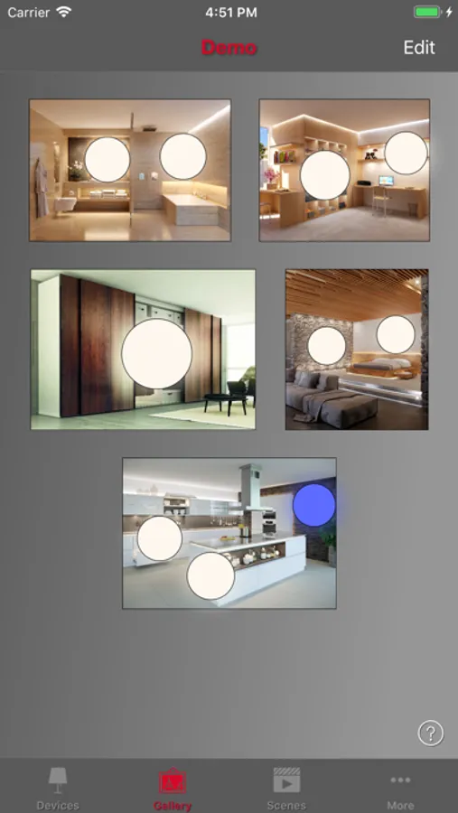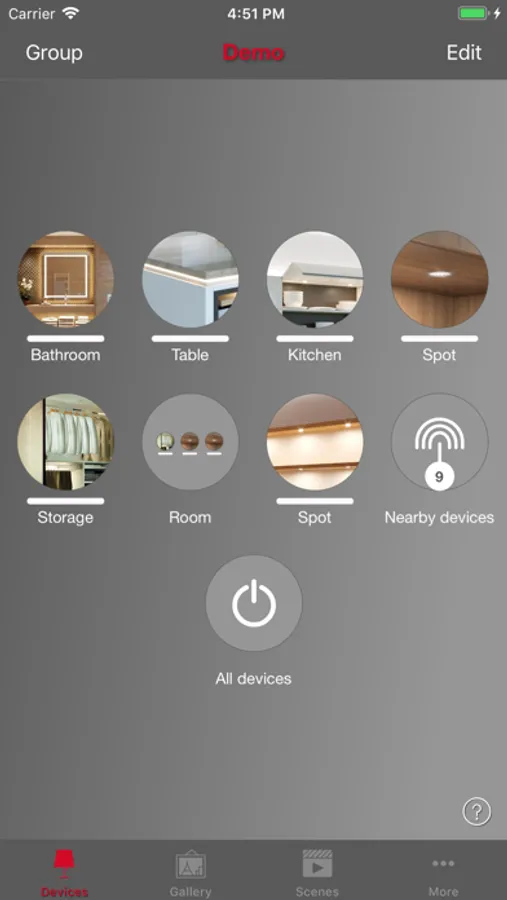 With the Gallery, the Häfele Connect app provides intuitive light control of the highest quality. Take a photo of your rooms, mark the lights in the photo and control the room’s atmosphere directly in the photo.