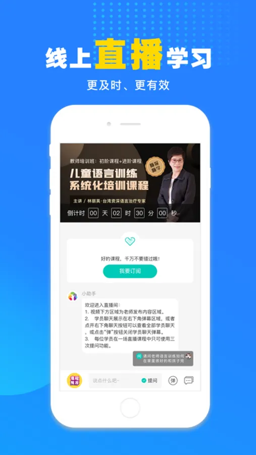 你好疗育课堂:是专为特需家庭提供在线疗育服务的学习平台。立足于实用性的要求,与国内外多家疗育机构、行业专家和治疗师建立合作,聚合了丰富的学习内容,包括直播课程、视频、音频等。平台提倡系统化的学习,旨在帮助特需家庭获得全面的、非零散的疗育知识和技能,助力成长。