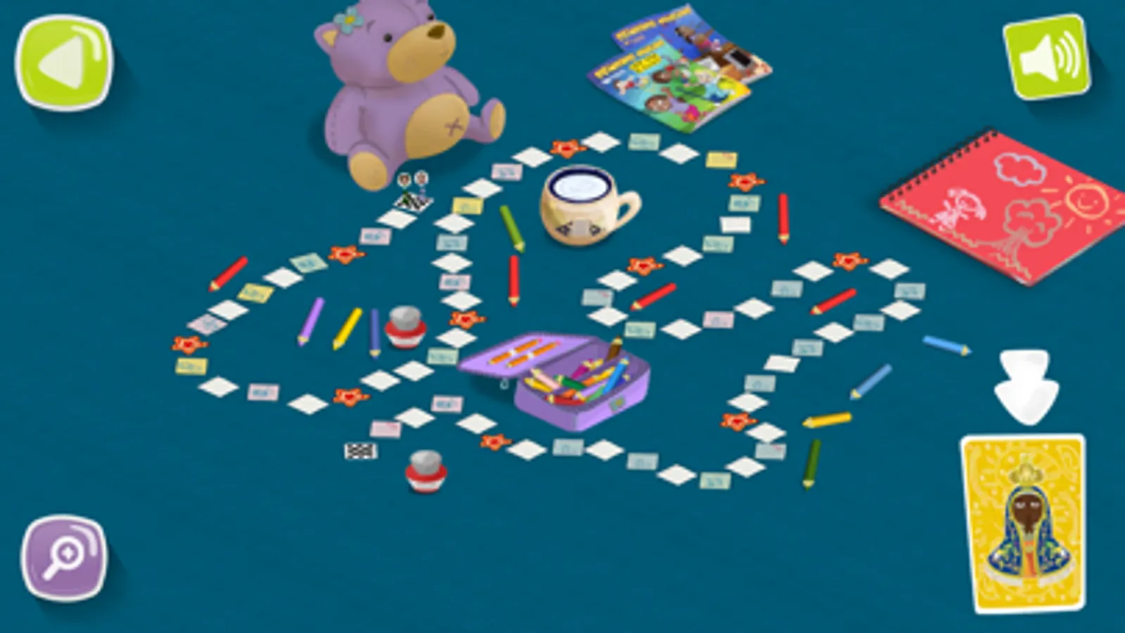 O cenário do jogo é um tabuleiro com 75 casas, com ponto de início e de fim. No início do jogo 2 peças, de cores distintas, uma para cada jogador, são colocadas no início do tabuleiro. Em seguida há o sorteio para saber quem começa. A peça que representa o JOGADOR “da vez” fica piscando.