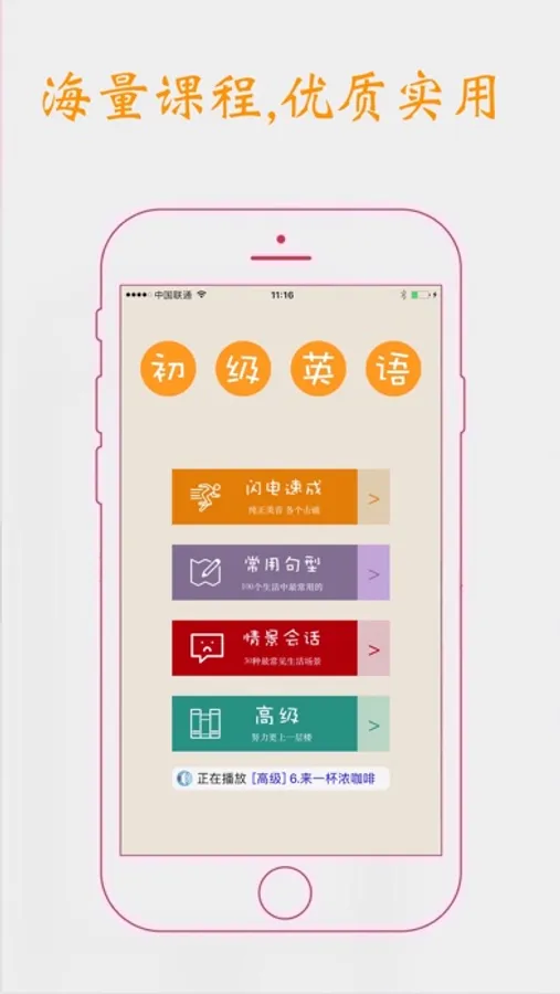 《初级英语》移动端英语口语专家,随时随地学口语!多说英语、多听英语,不用学霸笔记,潜移默化的让你多学英语口语